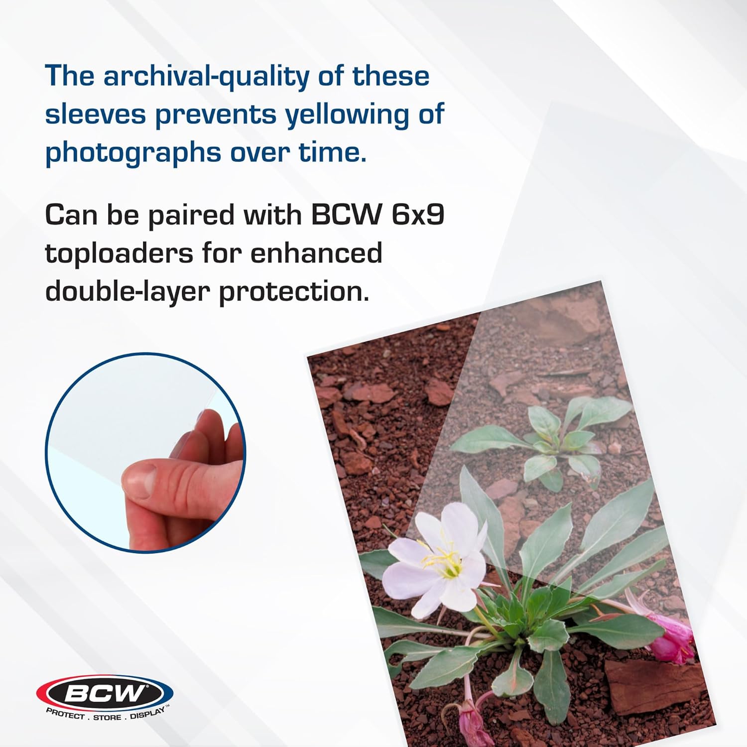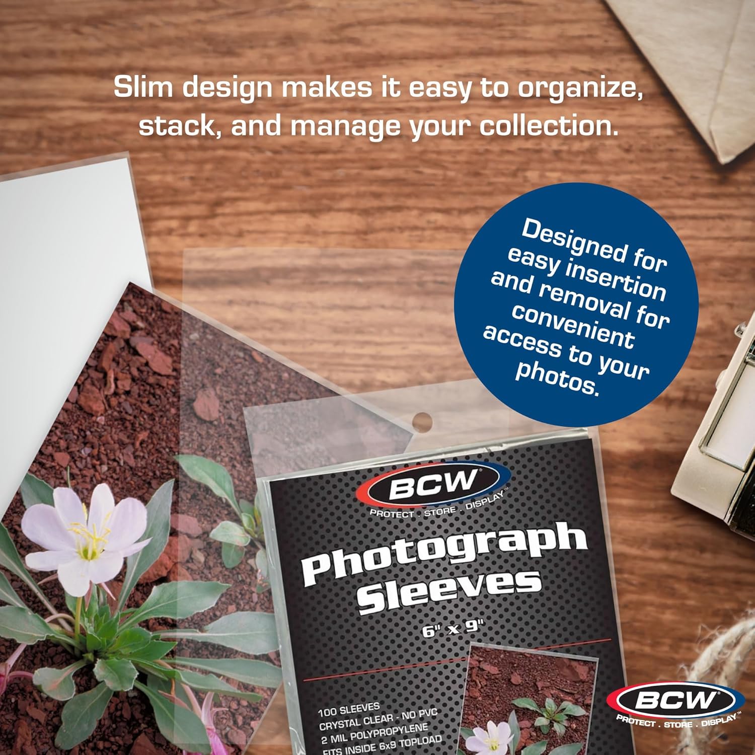 - Designed for 6x9 Photo Protection: These acid-free, crystal-clear polypropylene sleeves are ideal for storing and preserving 6x9 processed photographs. They fit perfectly inside BCW 6x9 topload holders, providing an extra layer of protection for collectors, photographers, and archivists.