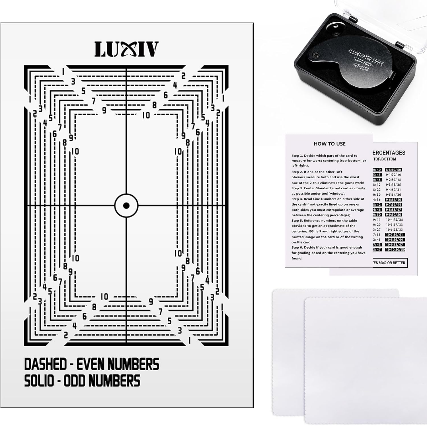- 【What You Will Get】: The package includes 1 pcs card grading tool with Instructions, 1 pcs 30X magnifying tool with box, and 2 pcs super soft clean cloth.